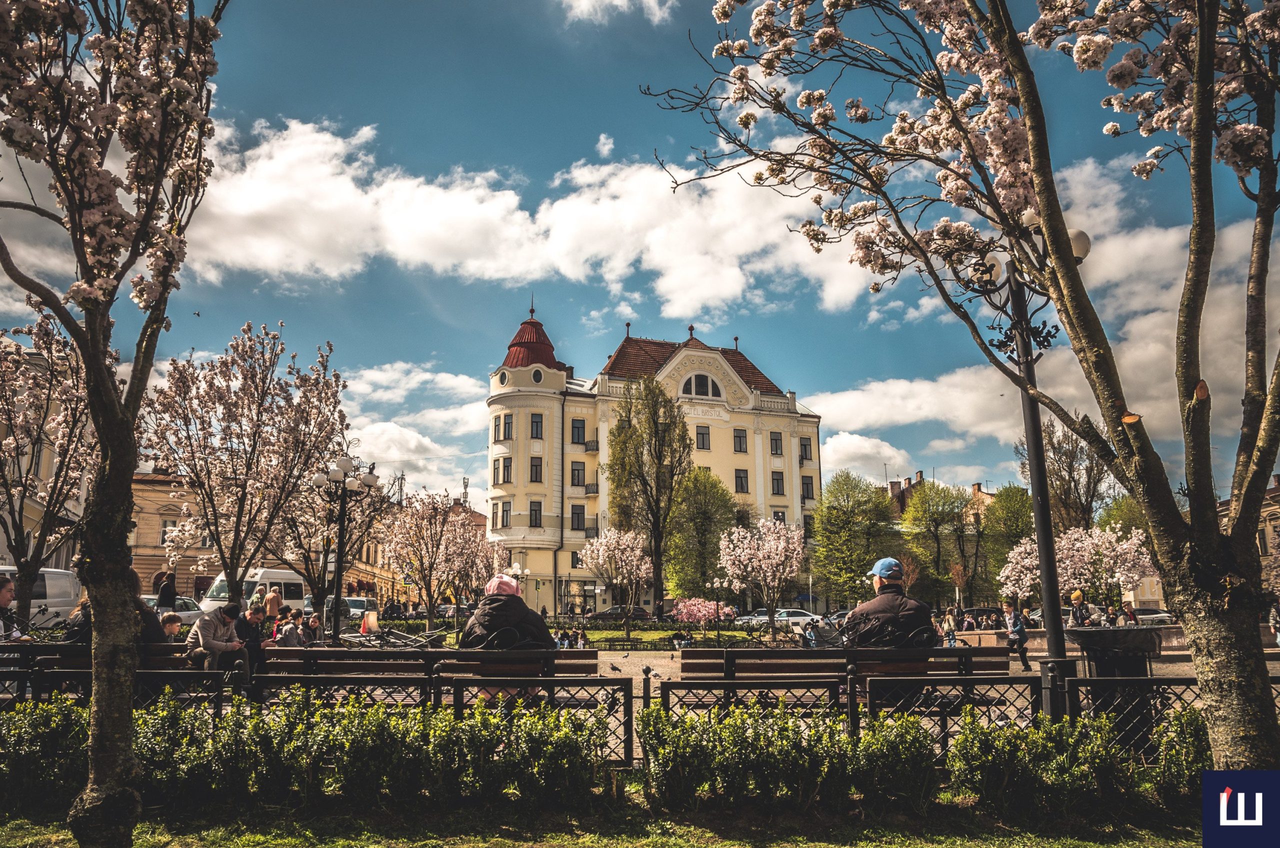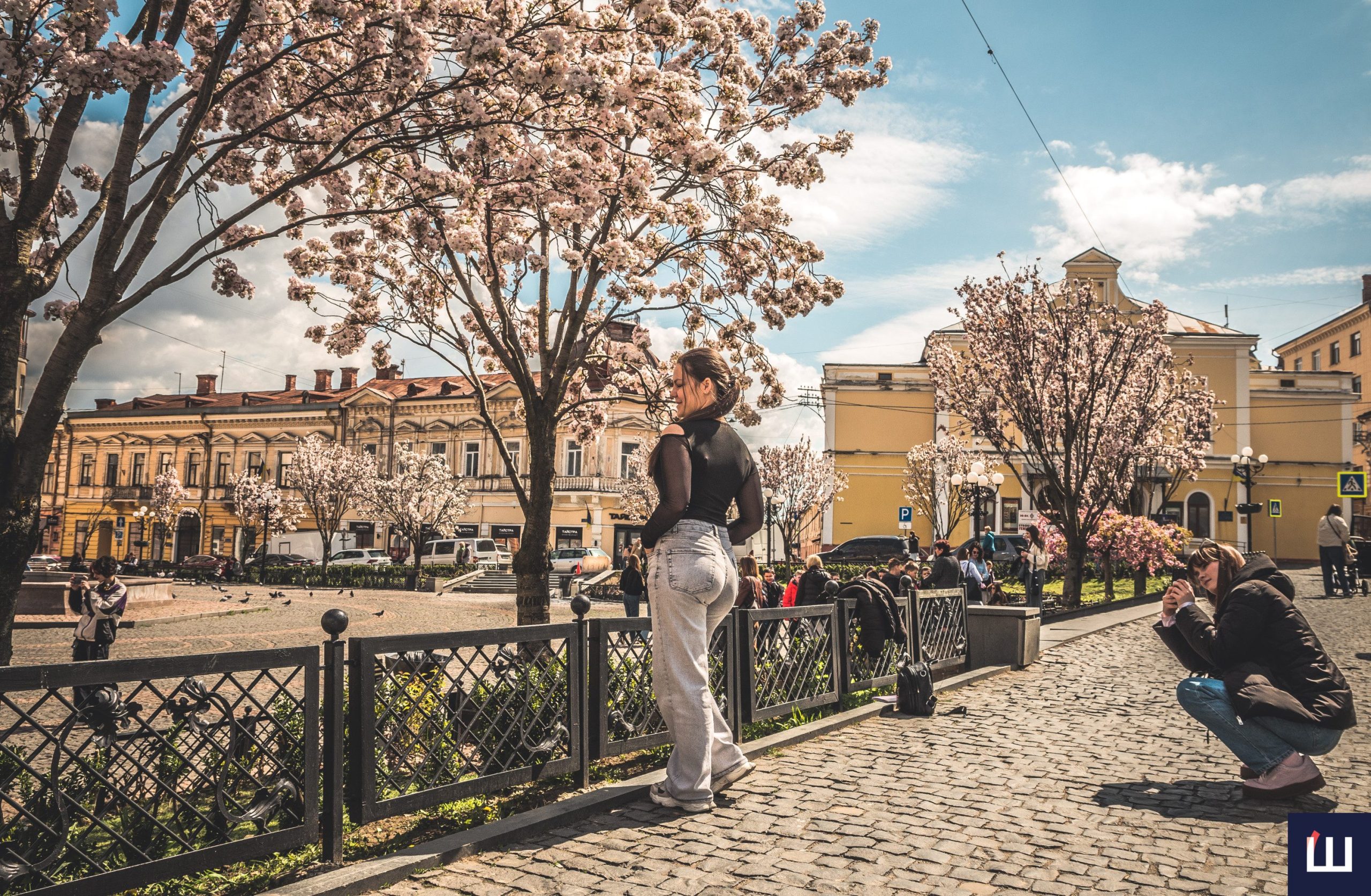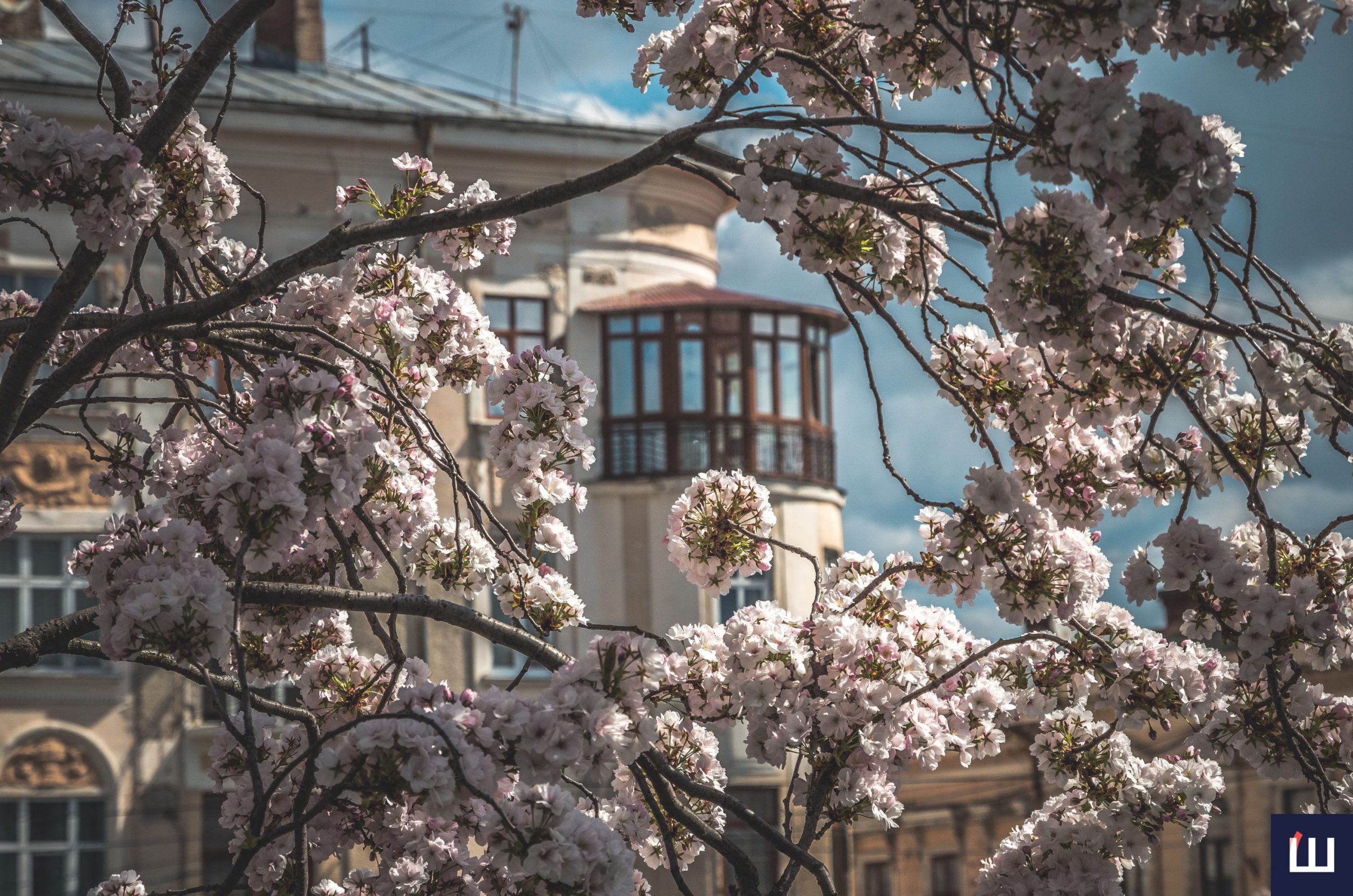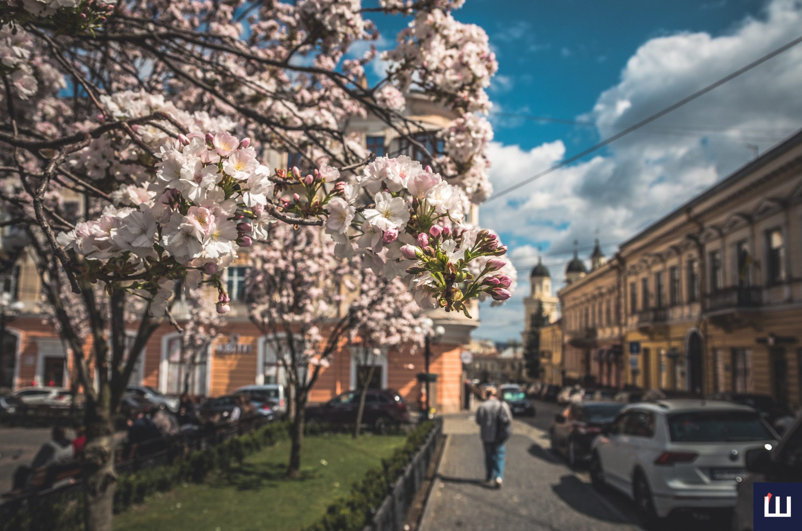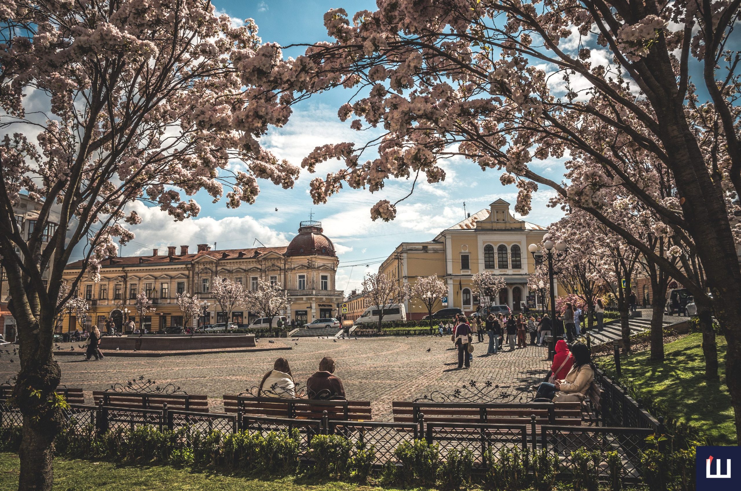 Сакури розквітли на площі Філармонії у Чернівцях: атмосферна локація у місті. Фото