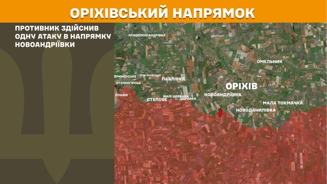 На Оріхівському напрямку ворог здійснив одну атаку в напрямку Новоандріївки.